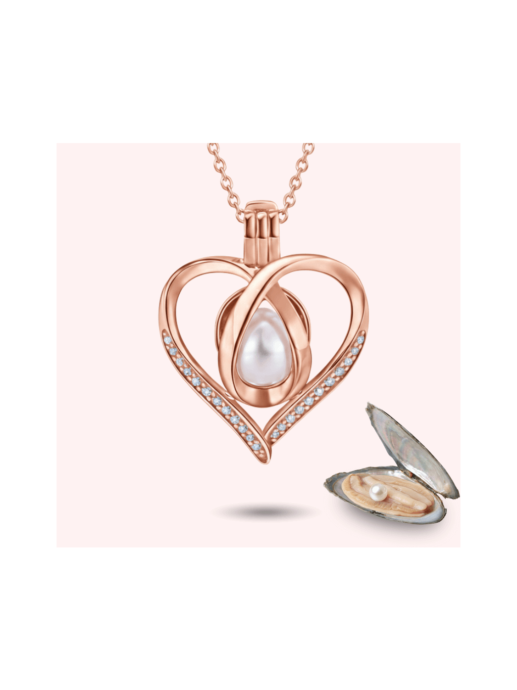 Růžový náhrdelník tvar Srdce + Mušle s perlou