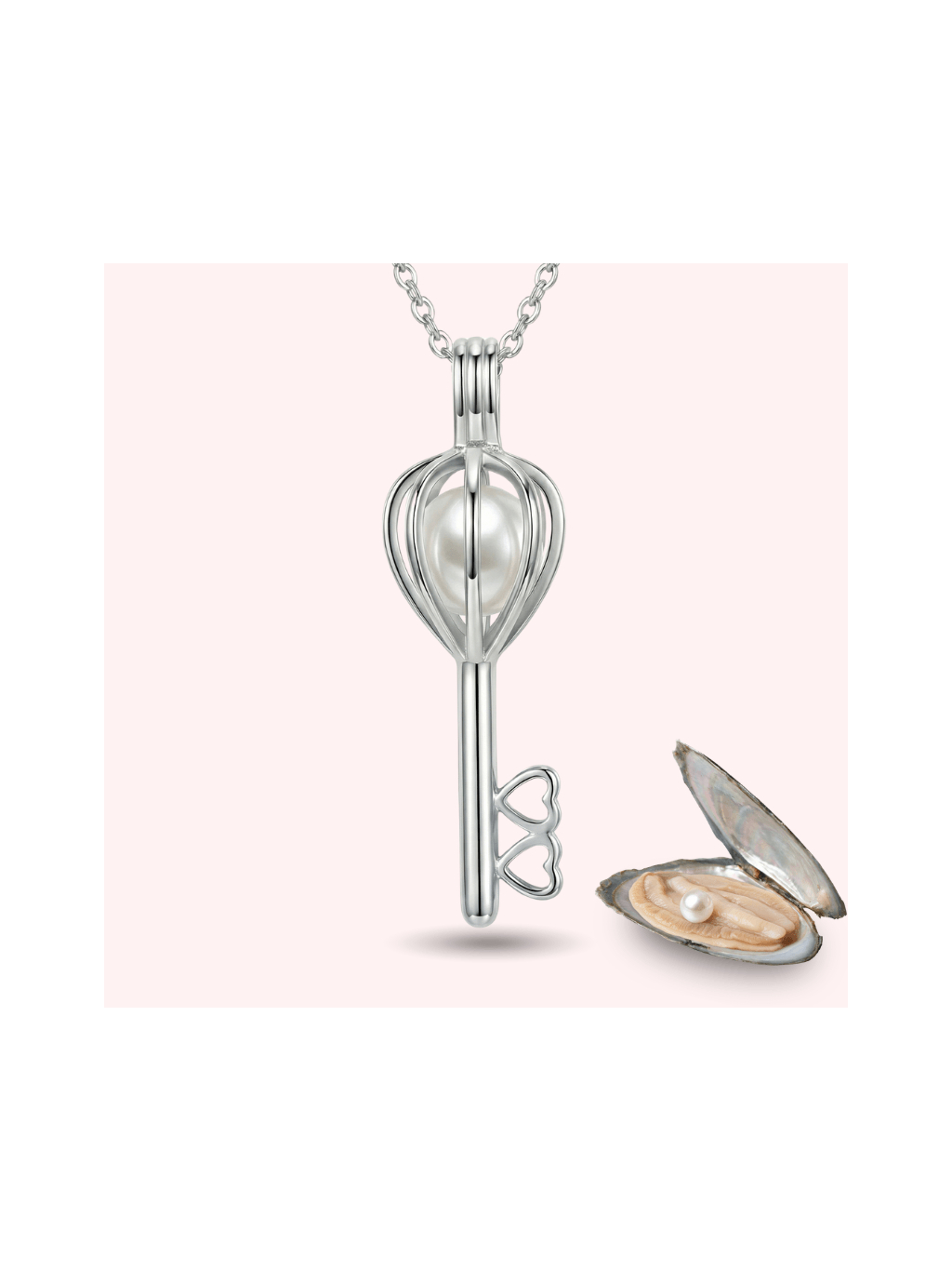 Stříbrný náhrdelník tvar Klíč + Mušle s perlou