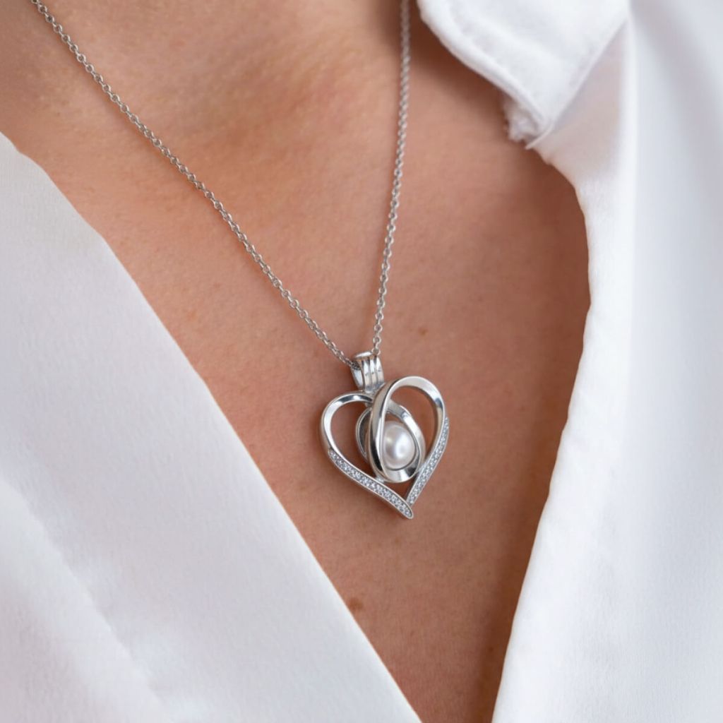 Stříbrný náhrdelník tvar Srdce + Mušle s perlou